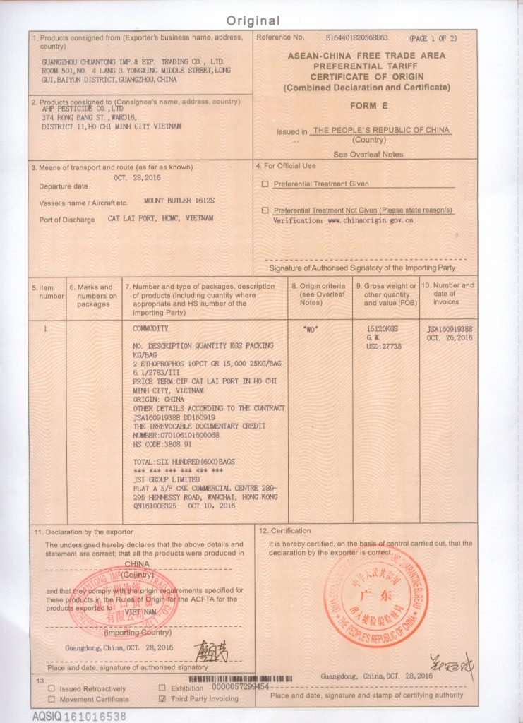 Chứng từ nhập khẩu Trung Quốc C/O form E